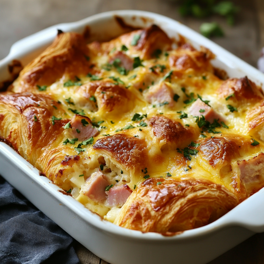 The chicken chicken ham and Cheese Croissant Breakfast Casserole is a delightful way to start your day. Its combination of flavors and textures makes it suitable for any breakfast or brunch occasion. Plus, feel free to customize with your favorite ingredients!