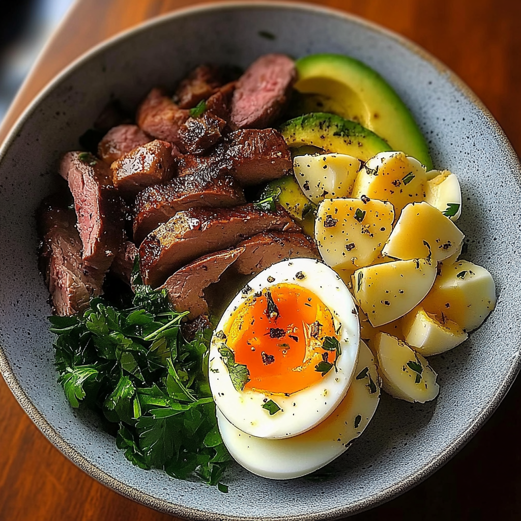 A Liver & Eggs Power Plate is a wholesome and nutritious dish perfect for any meal. This classic, iron-rich recipe combines pan-seared liver with soft-boiled eggs, caramelized onions, and creamy avocado. It’s an ideal choice for breakfast or a hearty dinner, offering a high-protein, low-carb option that will keep you satisfied. With its rich flavors and vibrant presentation, this dish is sure to impress on any occasion!