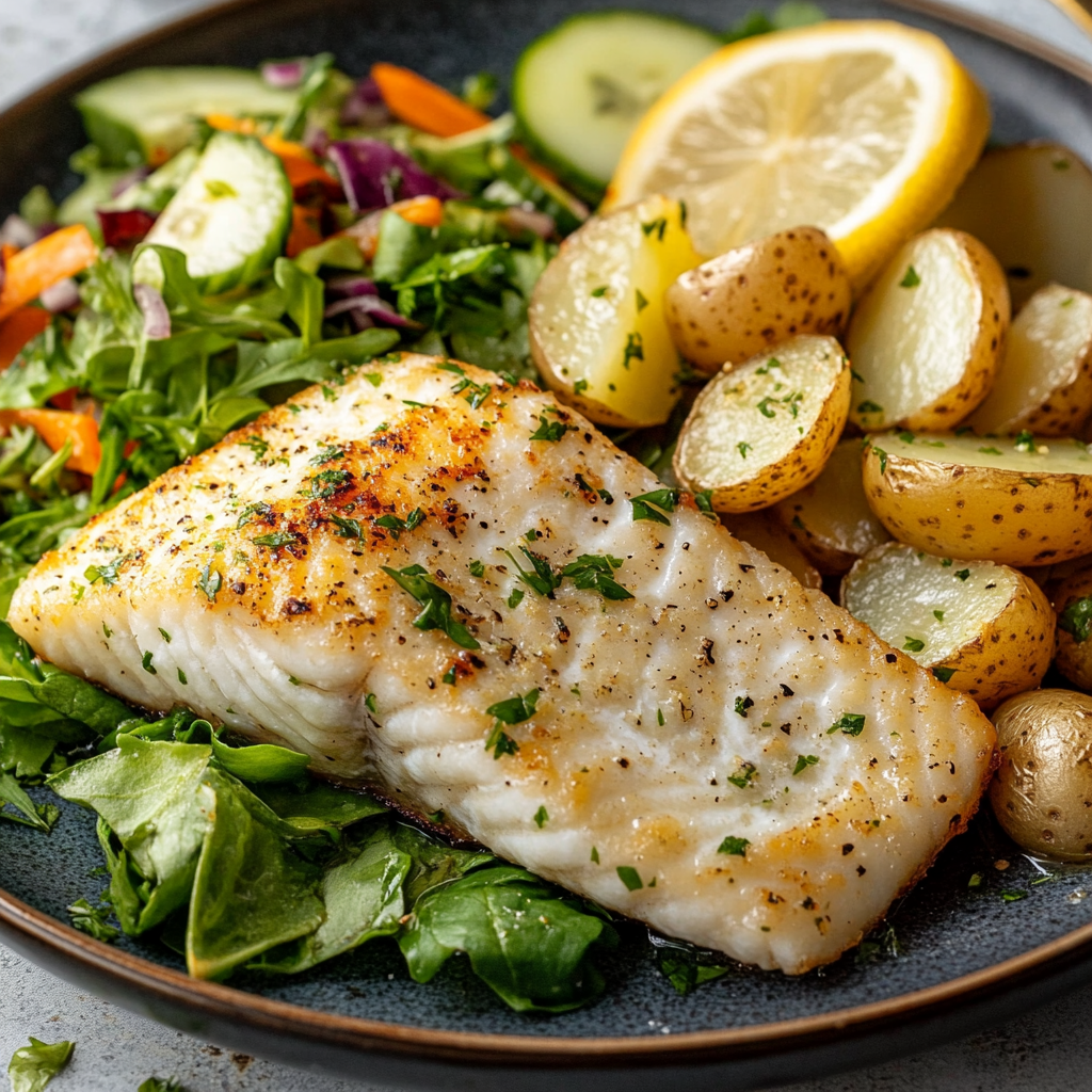 How to Perfect Pan-Seared White Fish with Herbed Baby Potatoes & Garden Salad